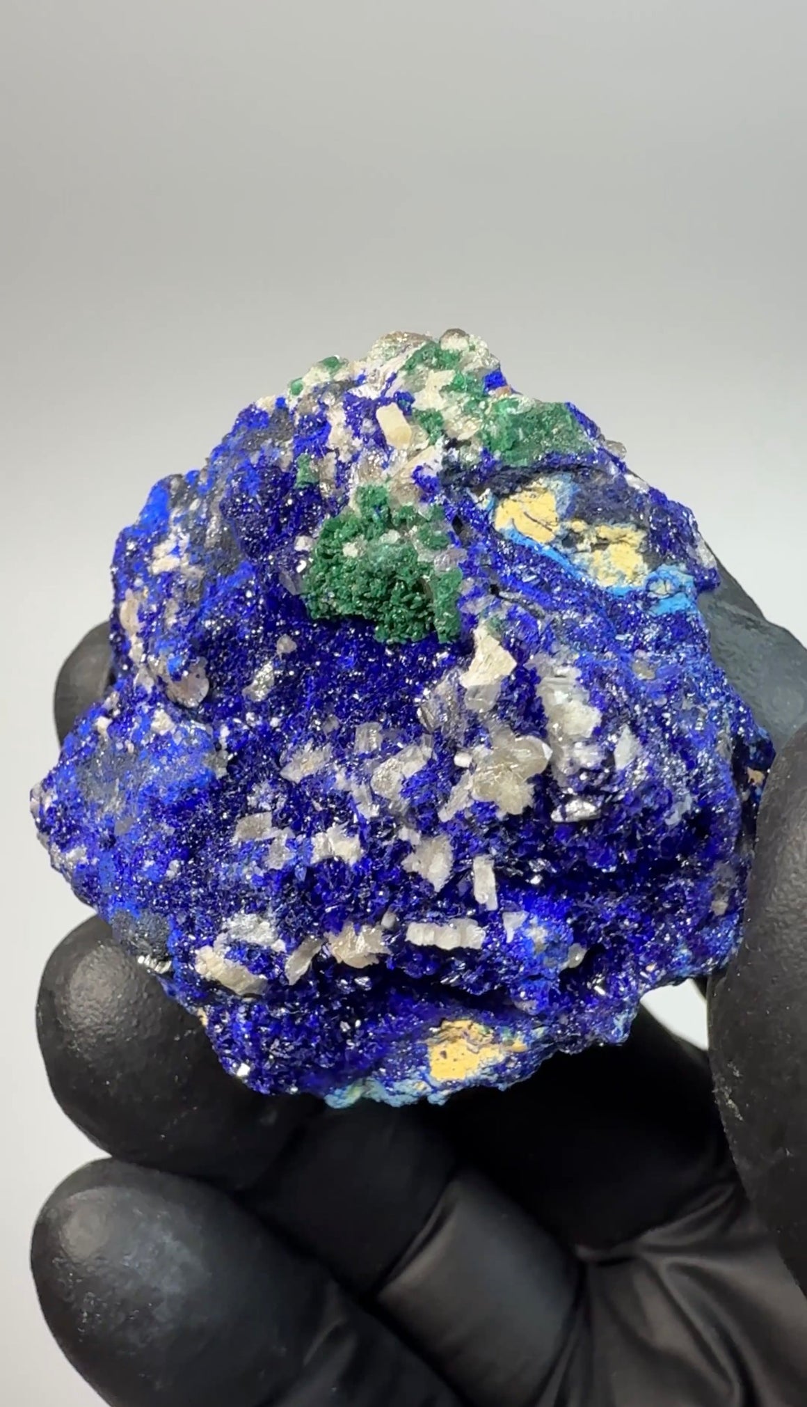 Striking deep blue Azurite paired with green Malachite and Cerussite crystals. A rare and eye-catching piece - perfect for collectors and display.