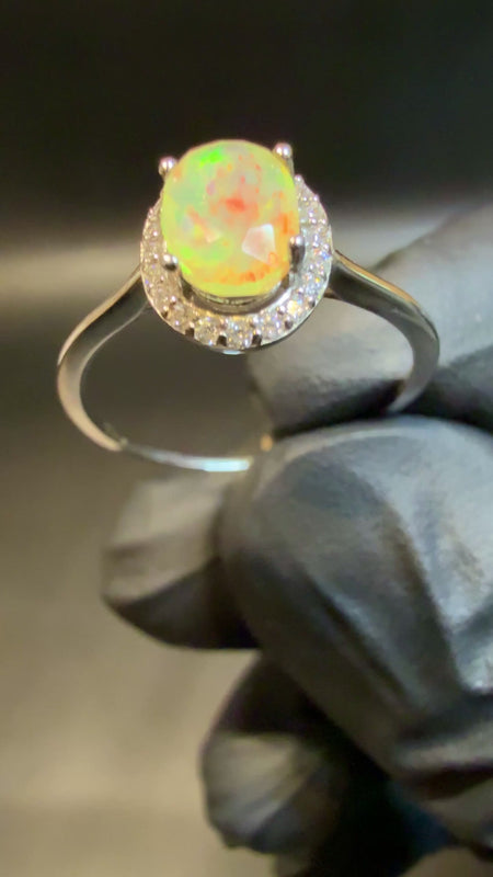 Ethiopian Opal Faceted Ring with White Topaz – Sterling Silver – Size 7 – 100% Natural